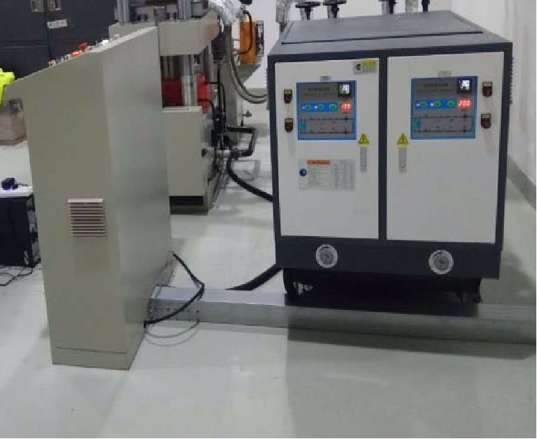 3. Electrical System 3.1 Include: Control box、console table、operation box、display screen、electric cables、 junction box 、crane structure etc. 220~230KW Mold temperature machine, upper and down Hot Platen can be controlled separately. 3.2 HMI touch screen: Pressure/temperature/time as well as other technology data can be set and recorded as formulation Running of whole system is controlled by PLC